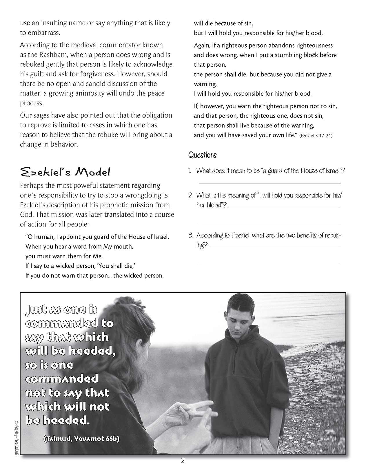Content of their Character: Tokhehah lesson offers students an opportunity to study the Jewish value of rebuke. Through a combination of texts and cases, this lesson allows students to explore the idea of helping others understand what they have done wrong without embarrassing them.