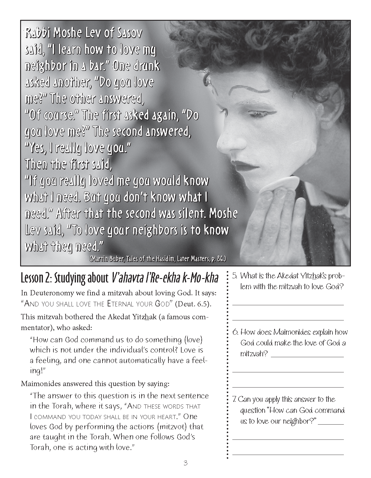 Content of their Character: V'Ahavta L'Re'ekha K'Mokha lesson offers students an opportunity to study the Jewish value of loving our neighbors as we love ourselves. Through a combination of texts and cases, this lesson allows students to explore the ideas of the ways we treat other people.