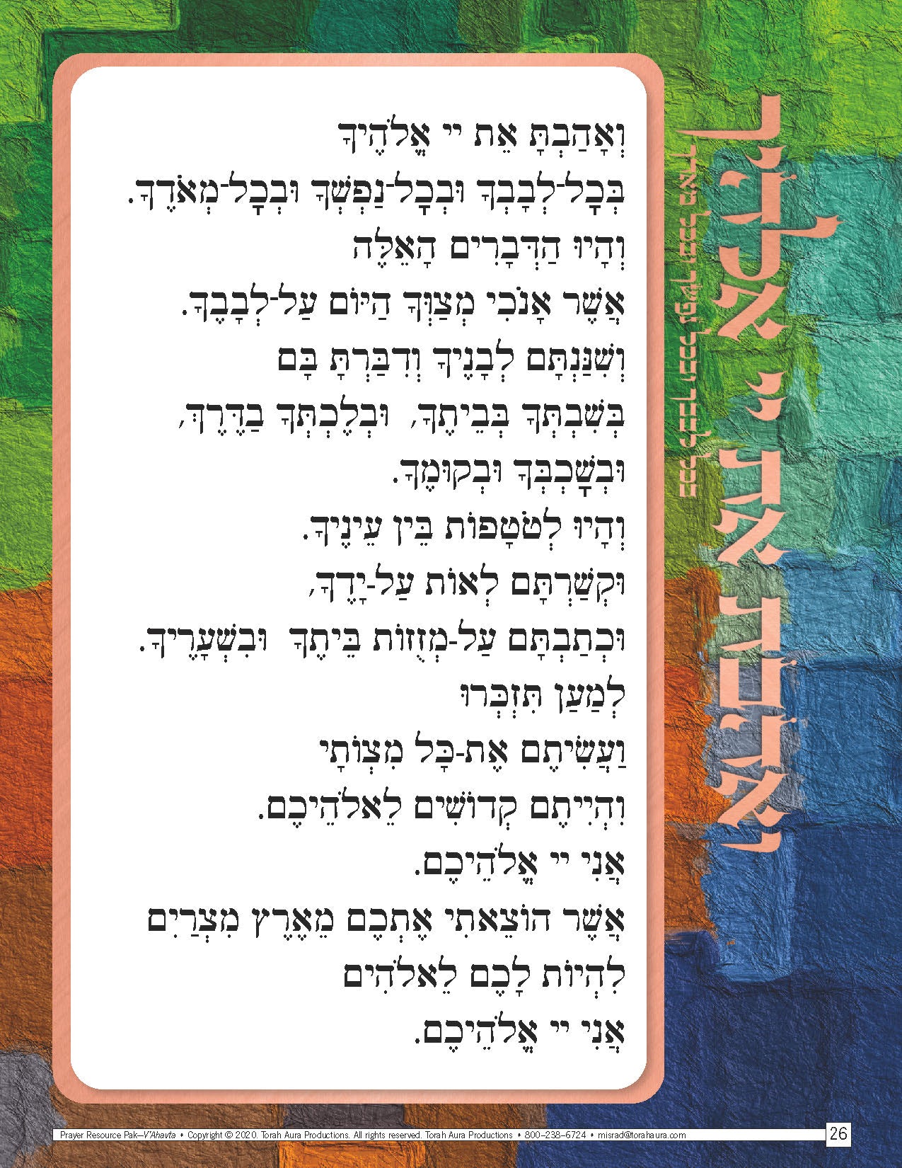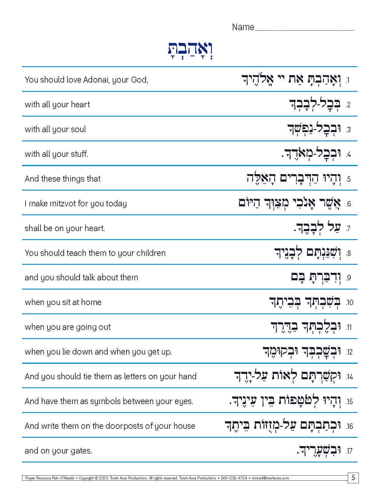 - The Prayer. A full version of the V'Ahavta with both Hebrew and English translations.