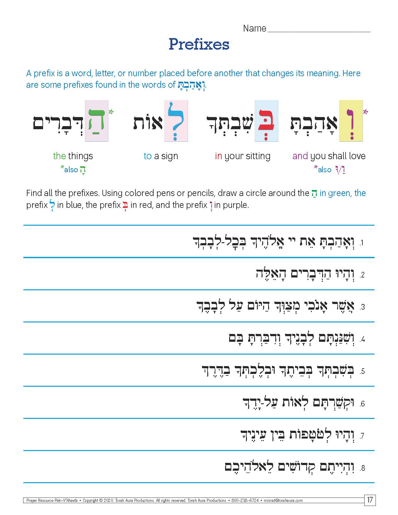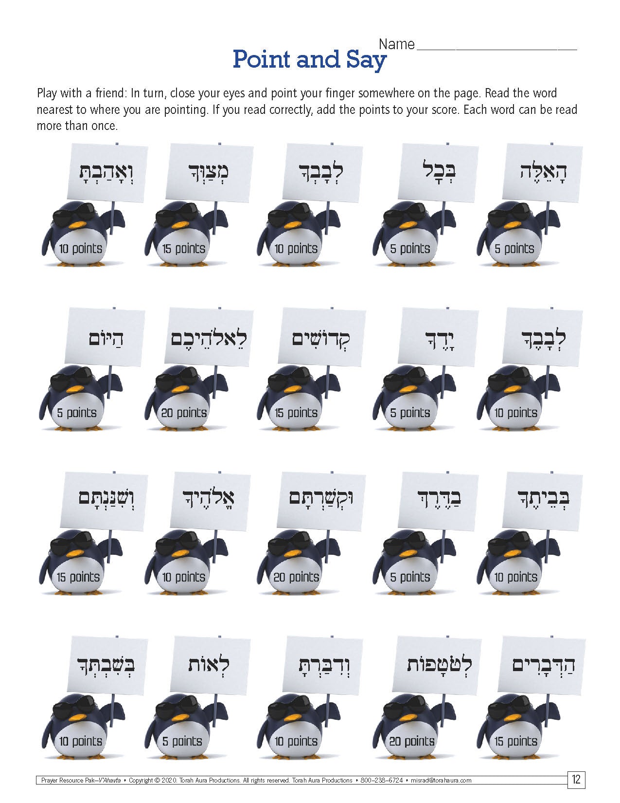 - Reading/Recitation Drill. A series of reading/recitation practices (including reading the V'Ahavta from the Torah), phrase-sounding out practice, and games for students to play with a colleague.