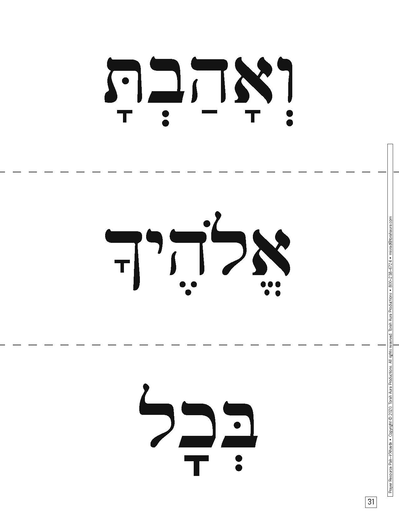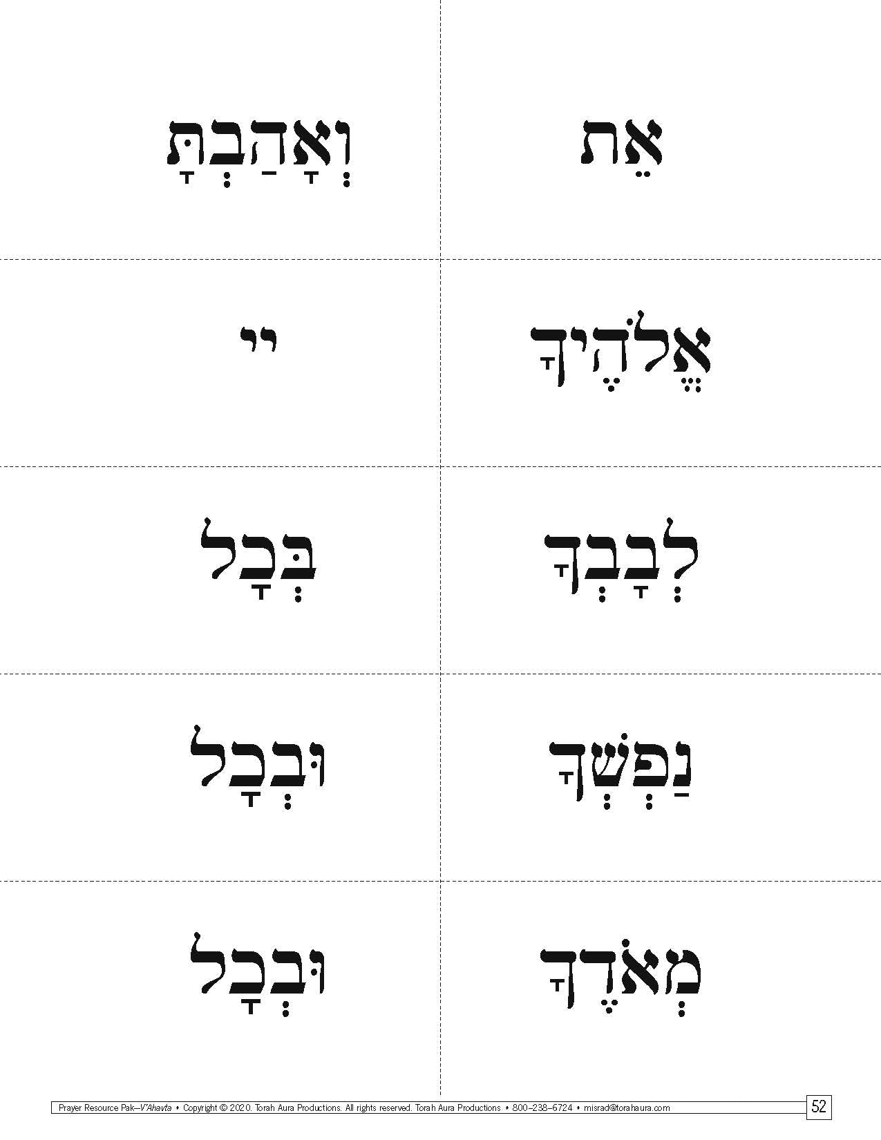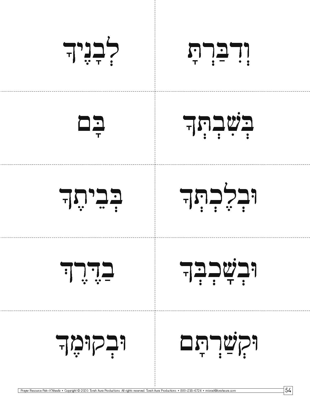 (c) 11” x 8.5 (one word per page). - Print and use these flashcards to drill or display the language of the V'Ahavta.