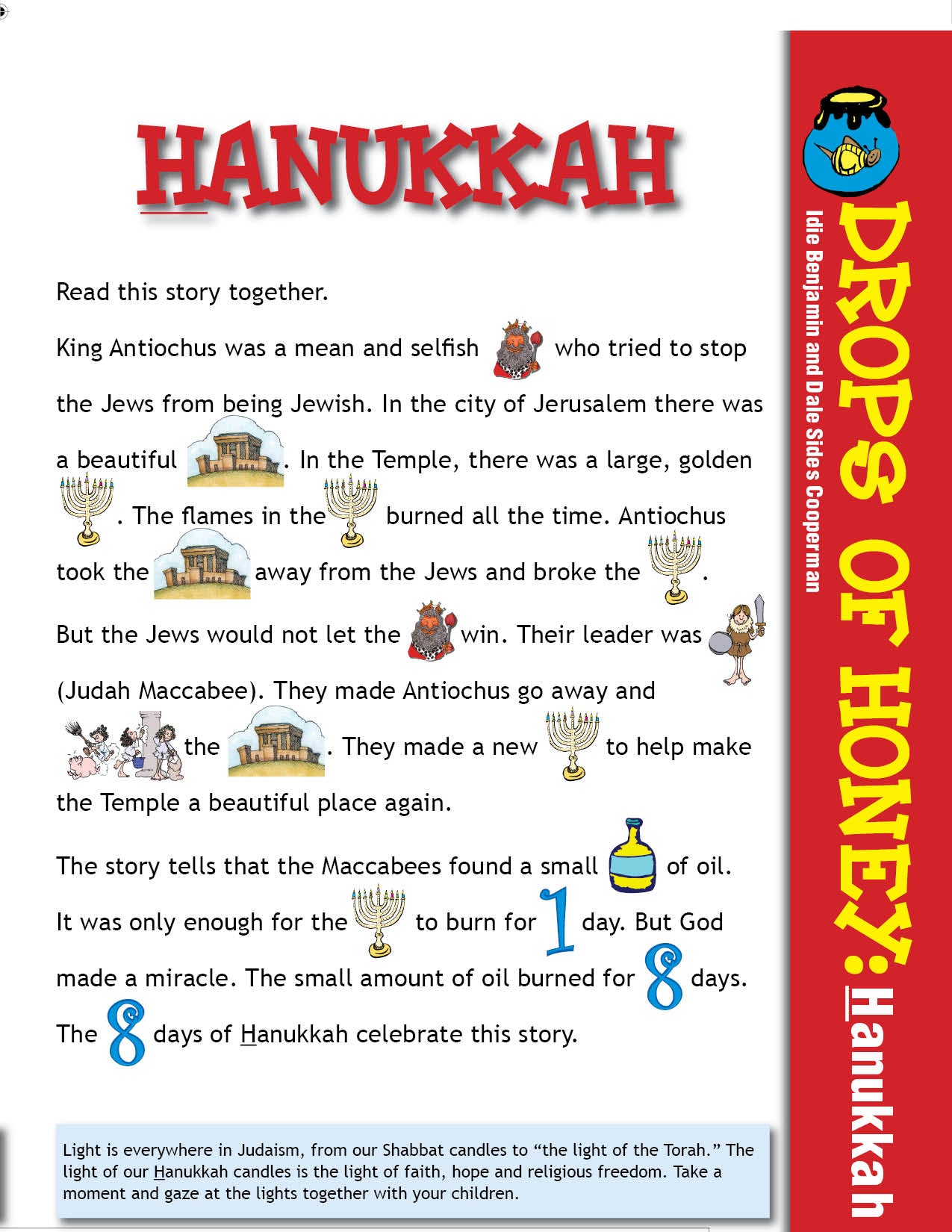 The Drops of Honey Hanukkah lesson introduces students to the story and customs of Hanukkah.