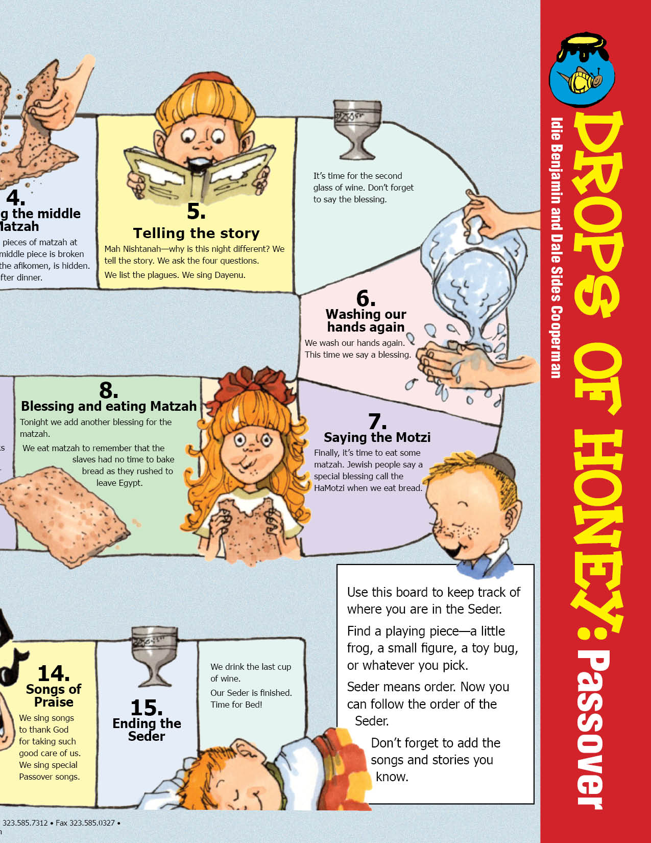 The Drops of Honey Passover lesson introduces students to the ritual items and foods we have on the seder plate, and offers students an opportunity to visit the fifteen steps of the seder.