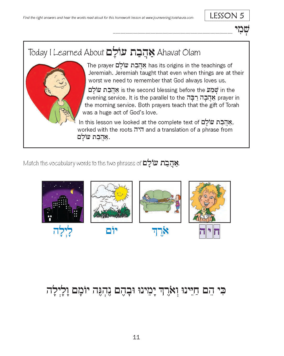 - The opportunity to translate a short portion of the prayer builds a further language connection.
