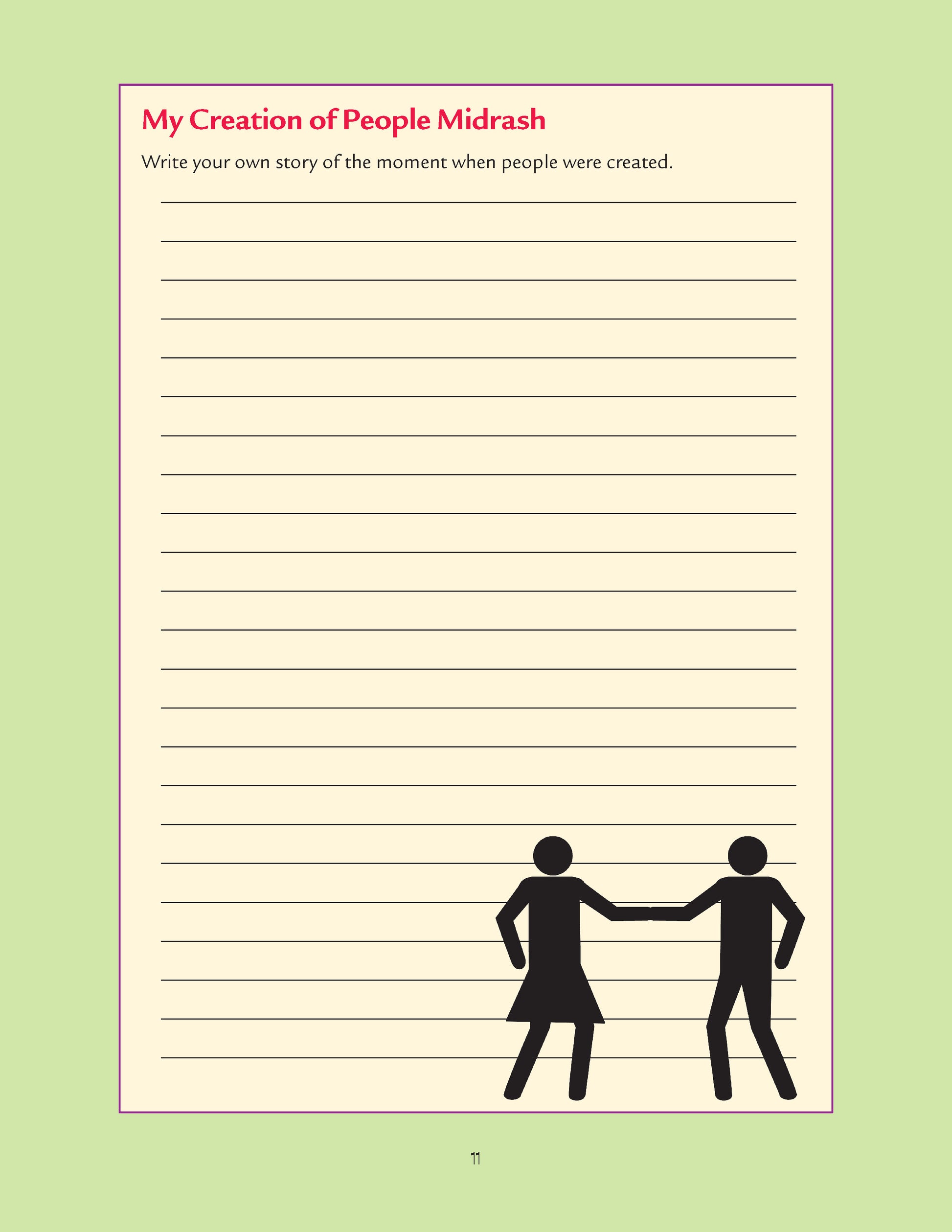 Grades: 5-7 Make a Midrash Out of Me is an imaginative way to study the book of Genesis. Each chapter begins with the Torah’s text, laid script. Students engage with the narrative by becoming the people in the story. Students make their midrash by interviewing the Bible characters, gaining insight into the text between the lines, and focused study of actual midrash from the Jewish tradition. As a cumulative activity, students analyze and synthesize what they’ve learned to create their piece of visual or literary midrash.