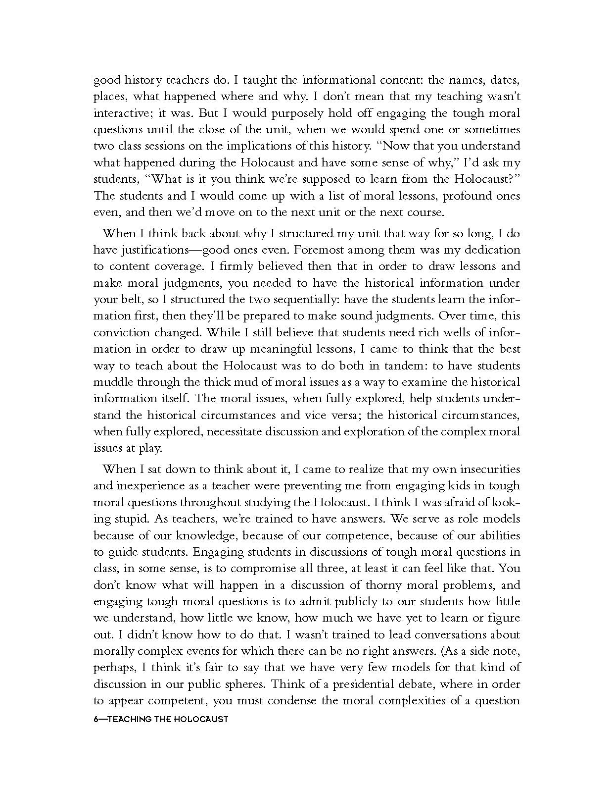 Teaching the Holocaust embarks on the sensitive mission of shaping student memory and consciousness around this horrific chapter in history. Navigating the challenging terrain of empathy, critical thinking, and respect, the book equips educators with tools to guide students not just in understanding the Holocaust, but in confronting its complexities, its impact on human nature, and its echoes in the present. Through carefully crafted methods and a focus on personal reflection, the book empowers students to become active agents against prejudice and ensure the cry of "Never Again" resonates deeply within them. Can such profound lessons pave the way for a more just future?