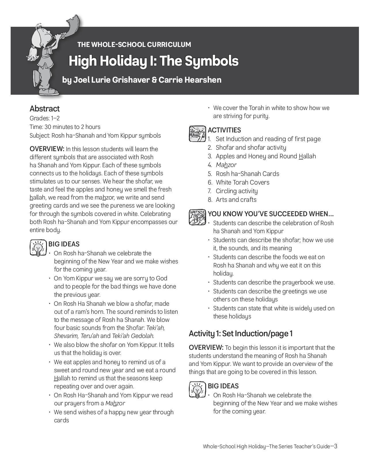 The Whole-School High Holiday Teacher's Guide contains the lesson guides for all seven Whole-School High Holiday lessons.Â